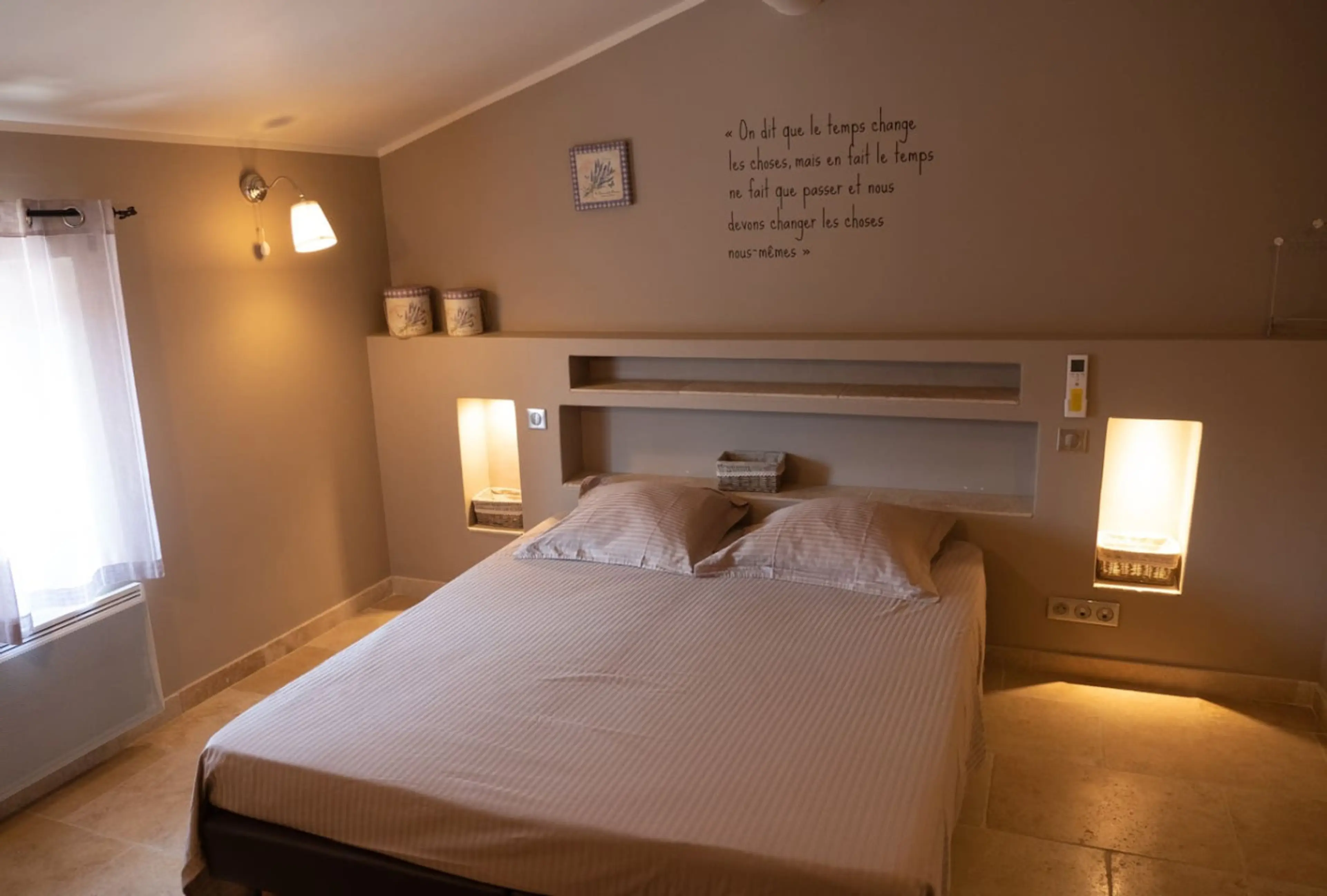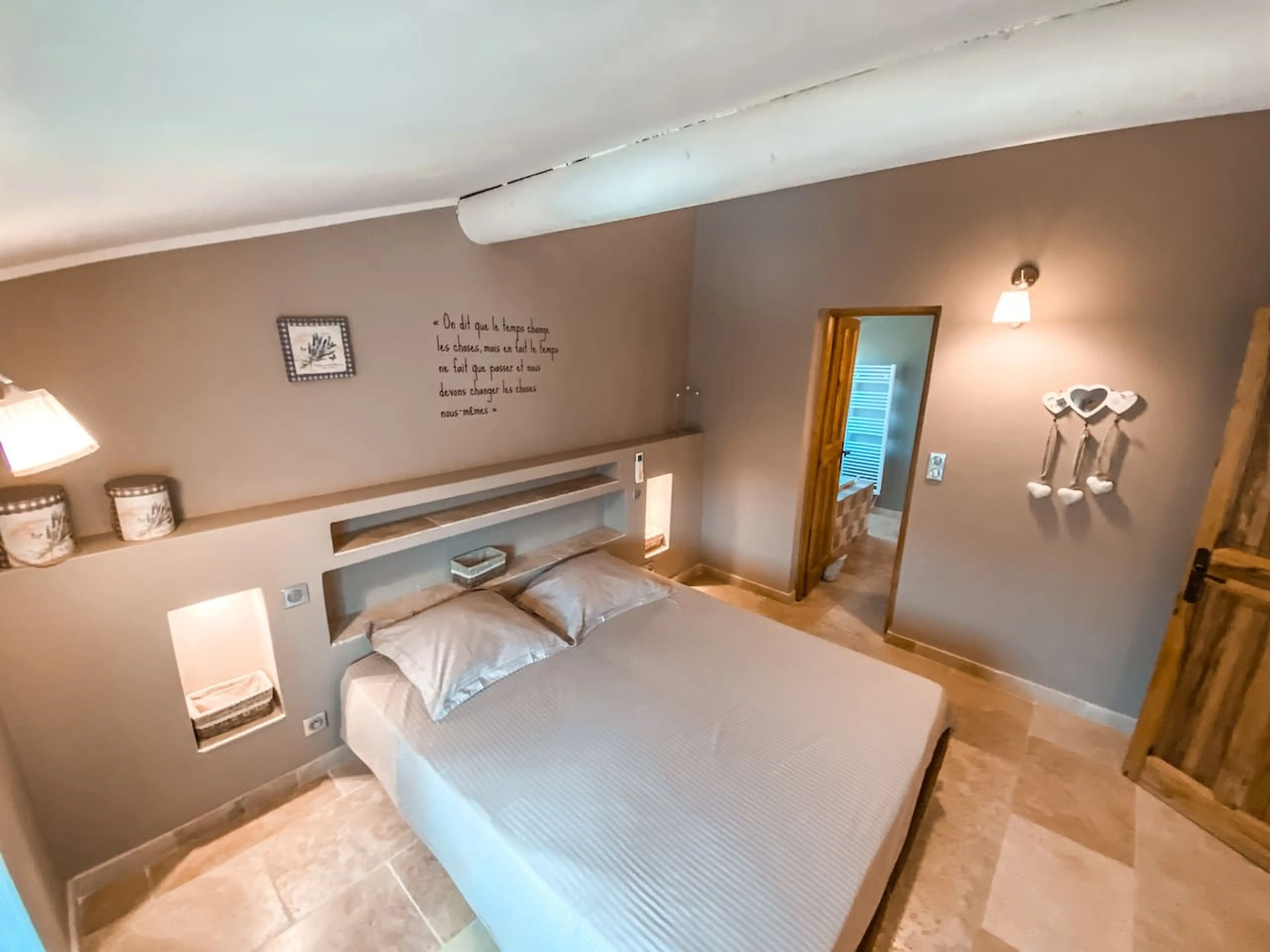 your luxury holiday villa in Provence. From the higher sun terrace, in addition to the open panoramic view, you also have a view of the “bald giant”, Mont Ventoux, favorite for cycling tourists. There is also a view of the lower travertine swimming pool terraces with accompanying swimming pool. T...